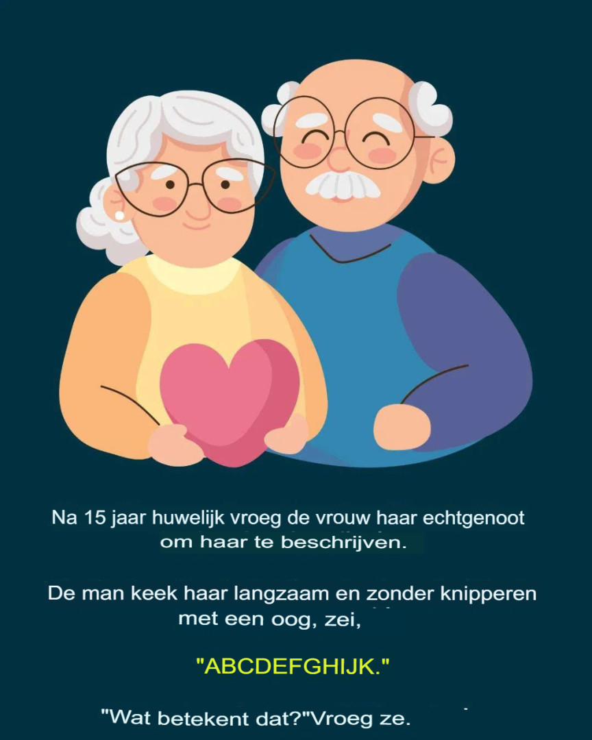 De echtgenoot keek haar langzaam en zonder met zijn ogen te knipperen aan en zei: “ABCDEFGHIJK.”