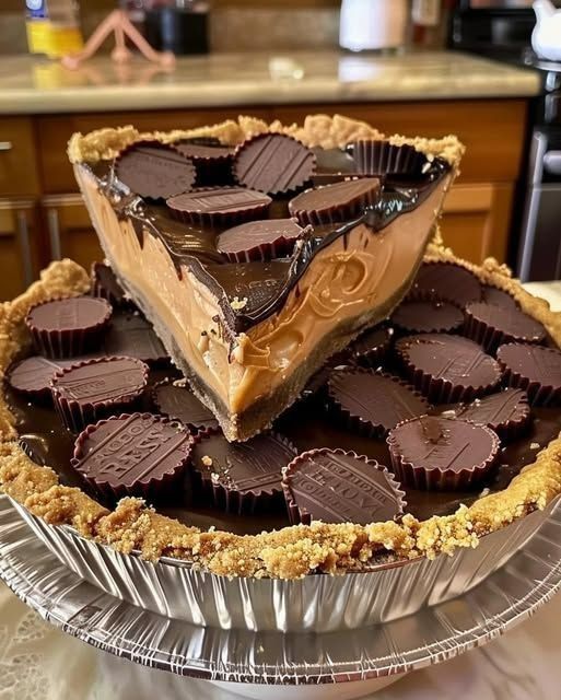 Als je fan bent van Reese’s Peanut Butter Cups, dan zal dit heerlijke dessert je liefde voor deze lekkernijen naar een hoger niveau tillen. Een rijke, chocoladeachtige korst omringt een romige pindakaasvulling, bedekt met een verrukkelijke chocoladeganache. Deze taart is perfect voor iedereen die van Reese’s houdt: hij is even lekker als indrukwekkend!