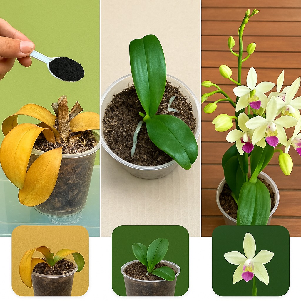 Slechts 1 lepel! De dode orchidee kwam plotseling weer tot leven en kreeg 1000 wortels.